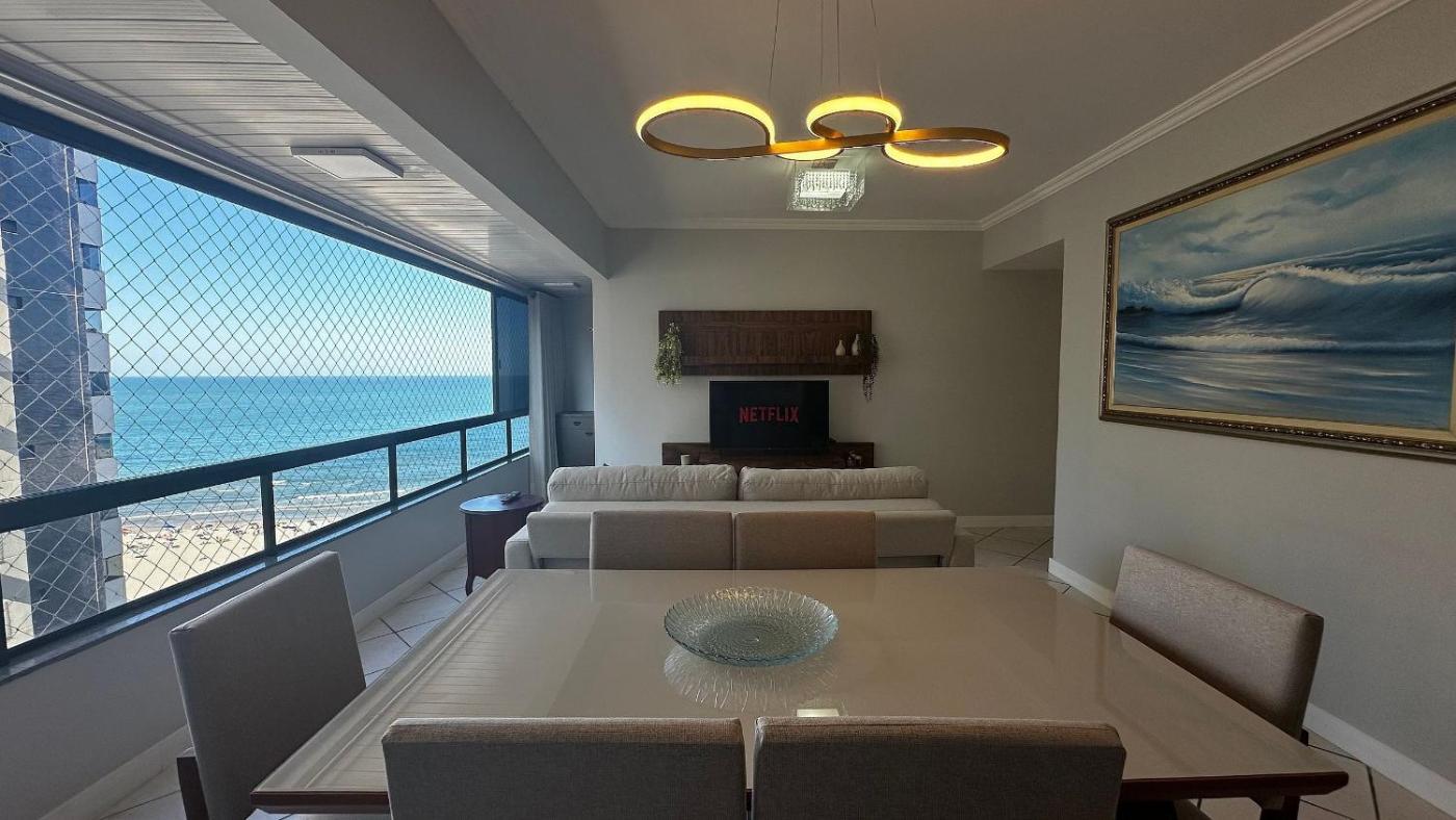 IT01- 3 Quartos| Vista Mar| Centro| Tela Proteção is a beachfront property situated in Balneário Camboriú, 80 metres from Central and 1.7 km from Camelódromo Balneário Camboriú. Both free WiFi and parking on-site are accessible at the apartment free of charge. The accommodation features a 24-hour front desk and a lift for guests.