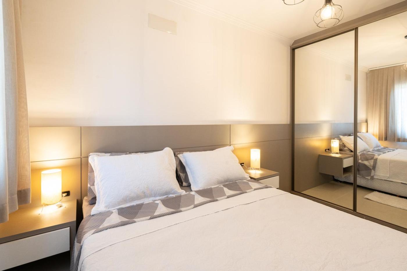 Two-Bedroom Apartment. This air-conditioned apartment consists of 1 living room, 2 separate bedrooms and 1 bathroom with a shower. Guests will find a stovetop, a refrigerator, kitchenware and an oven in the well-equipped kitchen. The apartment also offers a barbecue. Featuring a balcony with sea views, this apartment also provides a washing machine and a flat-screen TV. The unit offers 4 beds.