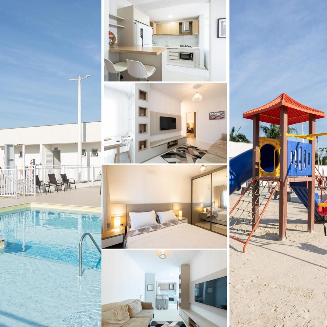 Boasting city views, Apto a 500m da PRAIA com SACADA com CHURRASQUEIRA, WI-FI, PISCINA, PORTARIA 24h e vaga de GARAGEM provides accommodation with an outdoor swimming pool, a garden and barbecue facilities, around 4.4 km from Univali Oceanographic Museum. The air-conditioned accommodation is 700 metres from Palmeiras Beach, and guests can benefit from private parking available on site and free WiFi. The accommodation features a lift and full-day security for guests.