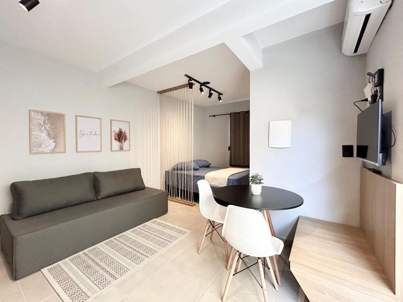 Set in Bombinhas, 001 - Apto monoambiente em residencial com piscina na praia de Bombas provides accommodation with an outdoor pool. The air-conditioned accommodation is 400 metres from Bombas Beach, and guests can benefit from on-site private parking and complimentary WiFi. The property is non-smoking and is located 4 km from Bombinhas Panoramic View Park.