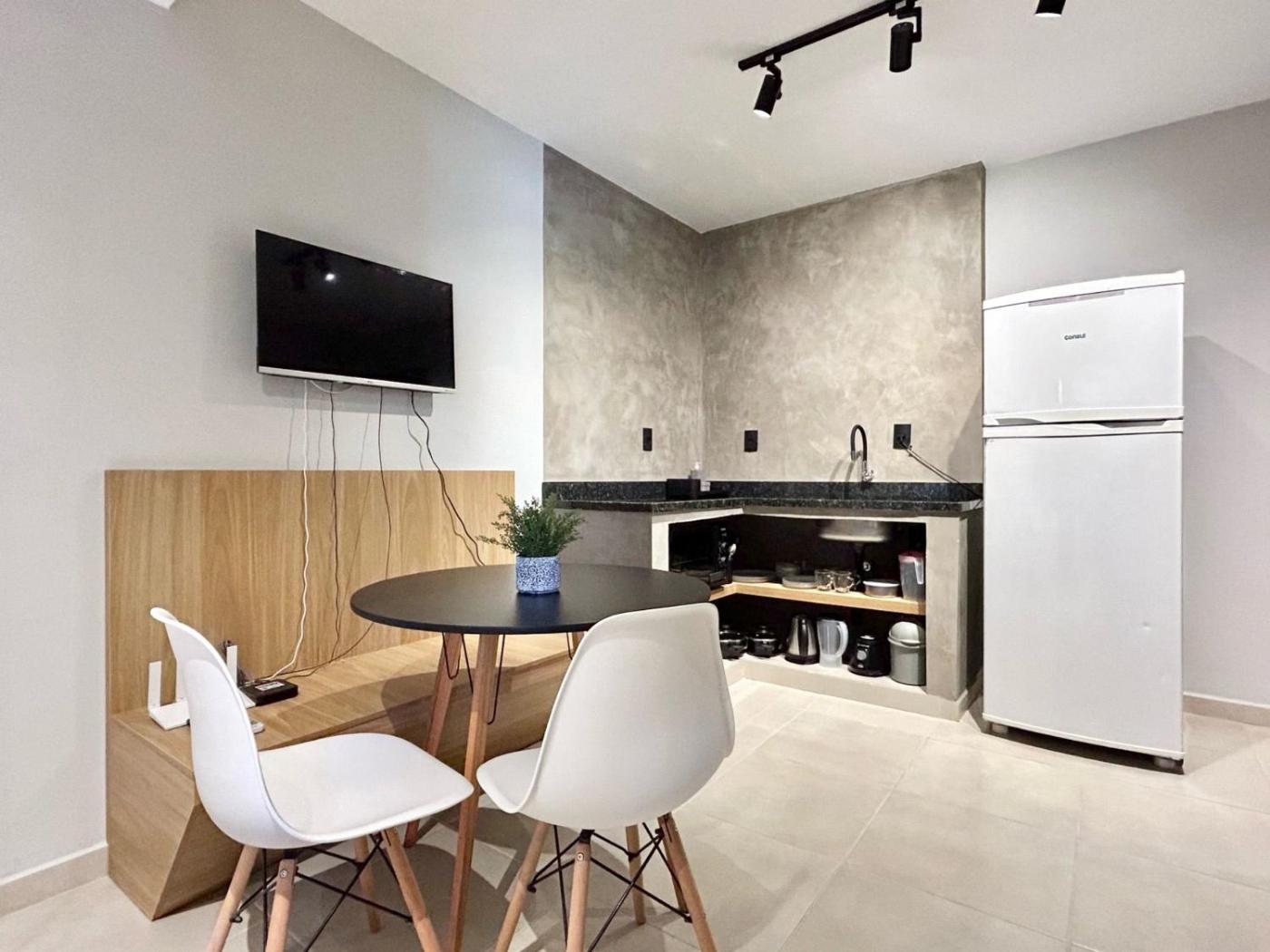 Situated in Bombinhas, 002 - Apto monoambiente em residencial com piscina na praia de Bombas provides accommodation with an outdoor pool. The air-conditioned accommodation is 400 metres from Bombas Beach, and guests can benefit from private parking available on site and free WiFi. The property is non-smoking and is located 4.1 km from Bombinhas Panoramic View Park.