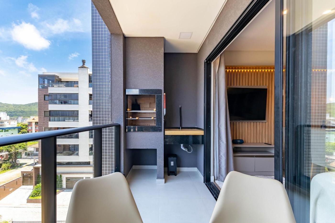 Boasting an outdoor pool and city views, Luxuoso Loft em CondomÃnio com Piscina a 150m do Mar is located in Bombinhas. This property offers access to a balcony, free private parking and free WiFi. The property is non-smoking and is situated 400 metres from Bombas Beach.