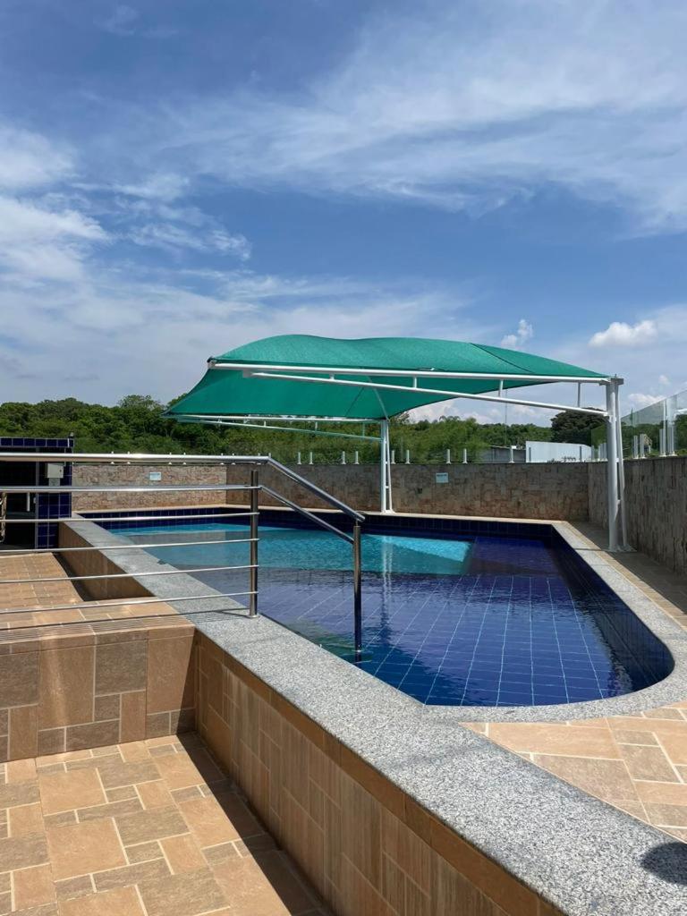 The apartment with a terrace and pool views features 1 bedroom, a living room, a flat-screen TV, an equipped kitchen with a microwave and a fridge, and 1 bathroom with a shower. The property offers city views.