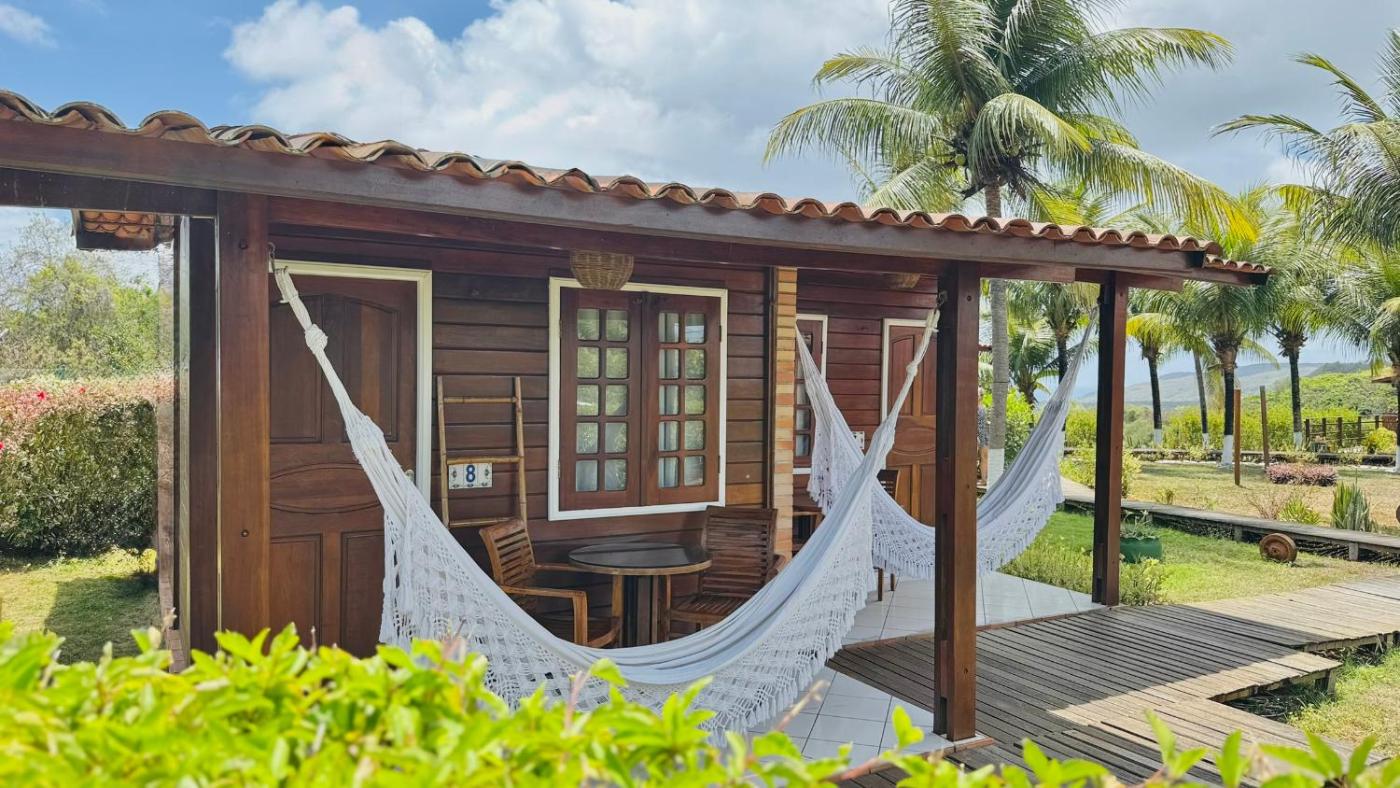 Accommodation at Estrela do Mar is provided in private bungalows that offer a patio with a hammock and garden views. There is also air conditioning, a TV and a minibar.