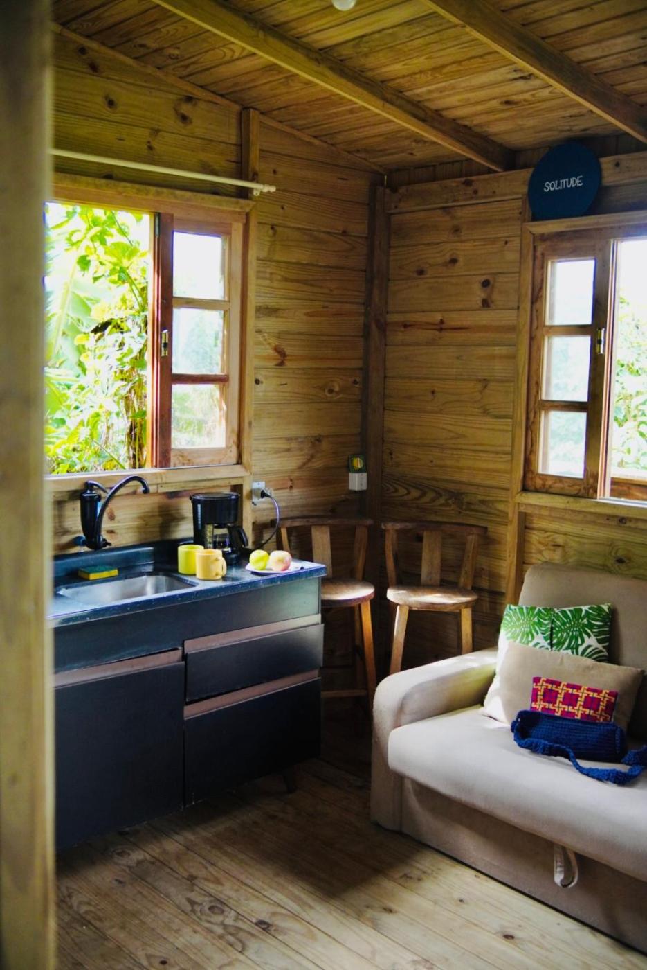 Featuring a balcony with garden views, a garden and barbecue facilities, Cabana Solitude - Gaivota can be found in Florianópolis, close to Praia da Solidão and 17 km from Campeche Island. Free WiFi is featured throughout the property and private parking is available on site. Naufragados Cannon is 20 km away and Aderbal Ramos da Silva Stadium is 20 km from the holiday home.