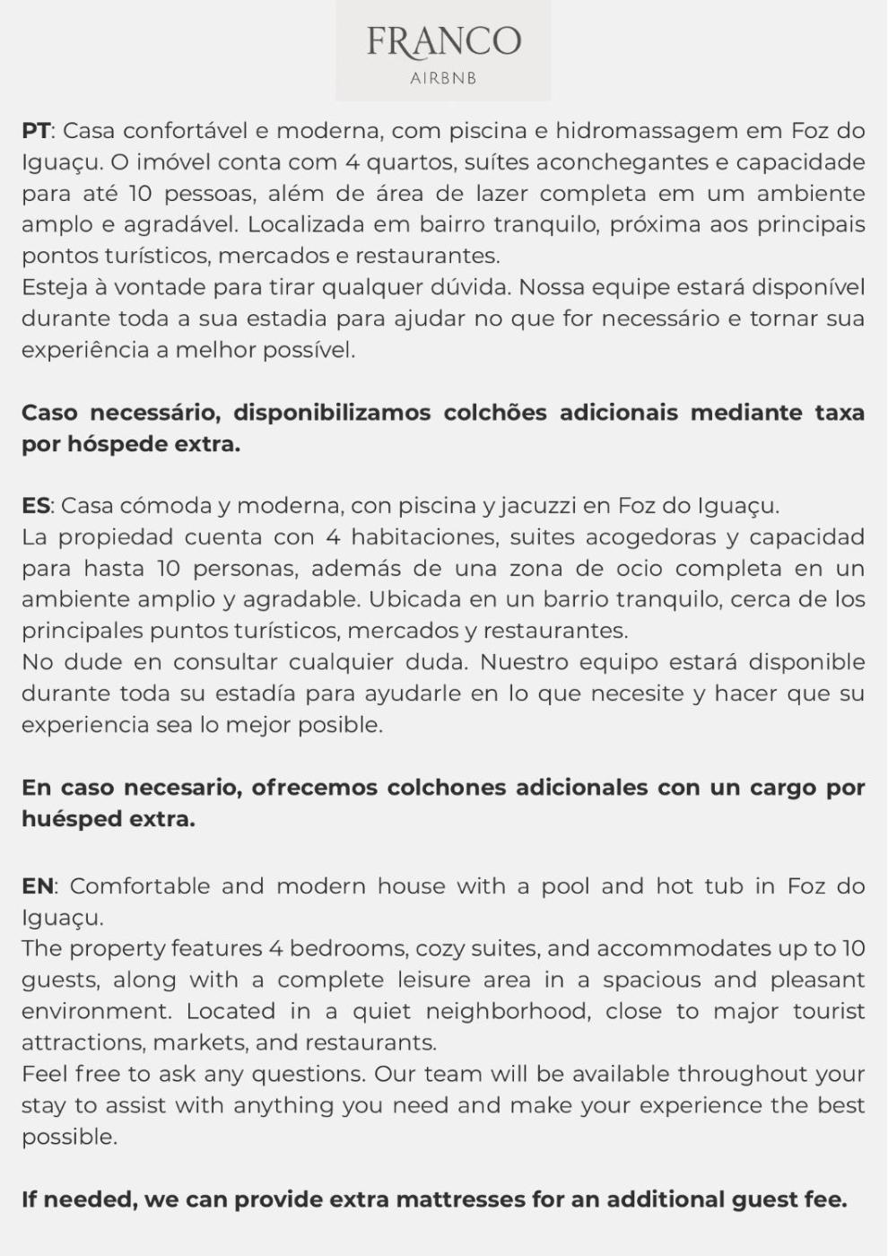 A recently renovated holiday home, Casa com piscina e hidromassagem offers accommodation in Foz do IguaƧu. This holiday home has a private pool, a garden, barbecue facilities, free WiFi and free private parking. Outdoor seating is also available at the holiday home.