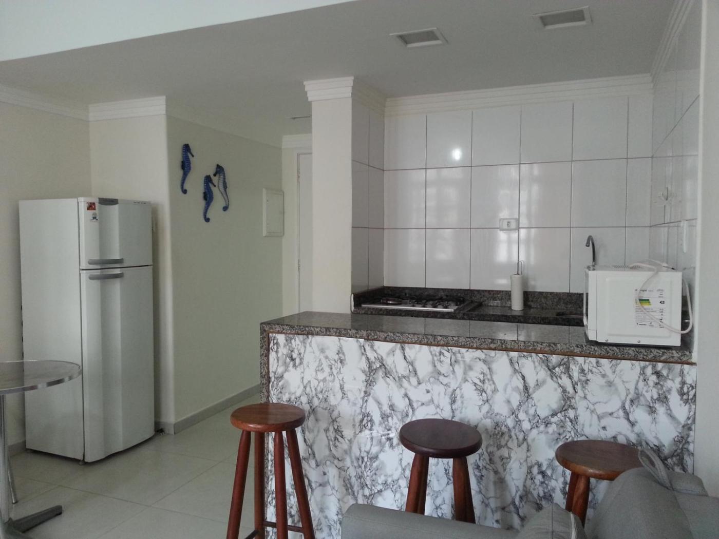 Kit Pitangueiras provides accommodation within 500 metres of the centre of Guarujá, with free WiFi, and a kitchenette with a microwave, a fridge and a stovetop. It is located 200 metres from Pitangueiras Beach and features a 24-hour front desk. The apartment features family rooms.