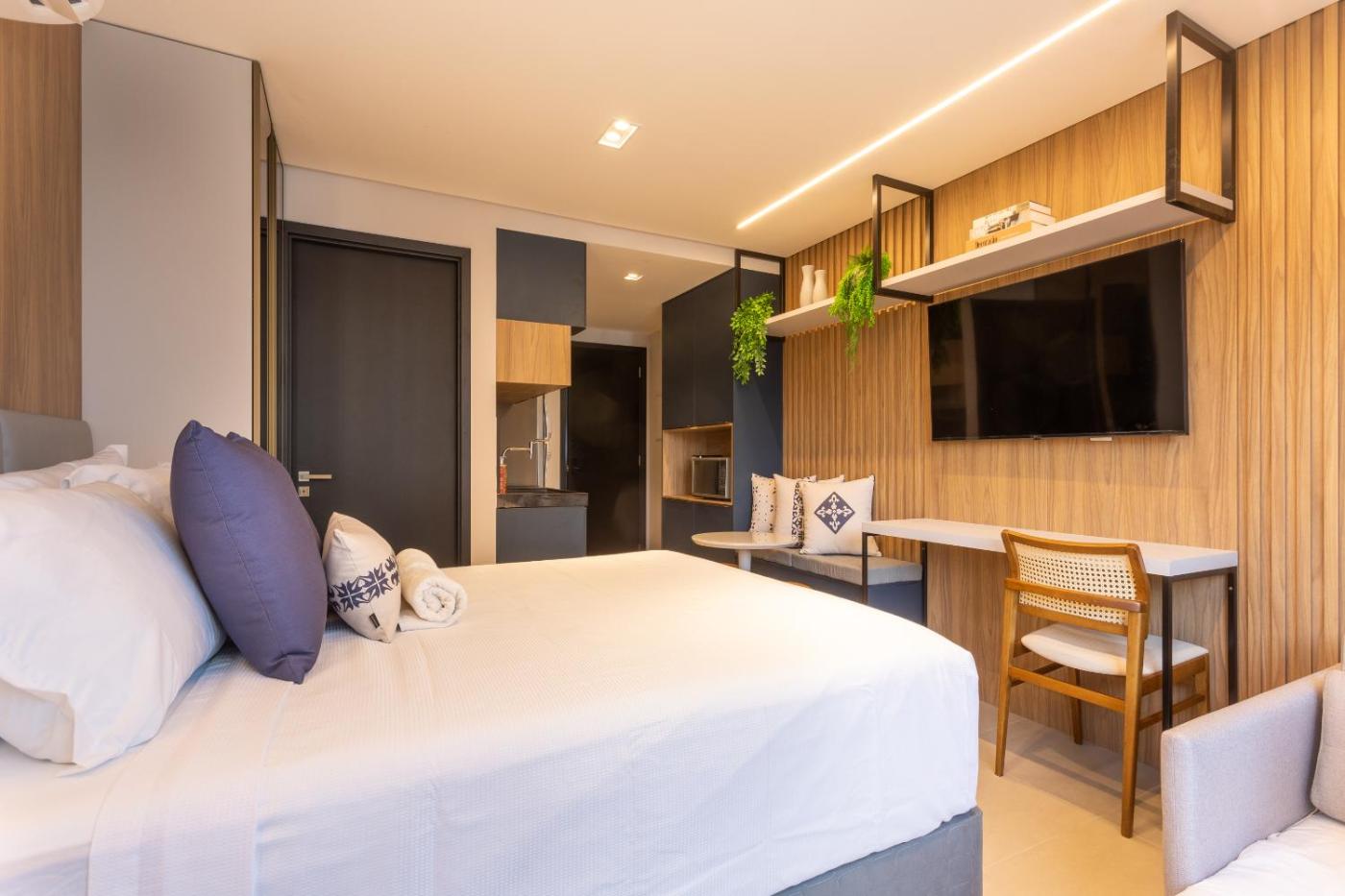 Deluxe Studio. The rooftop pool is the standout feature of this studio. Guests can make meals in the kitchen that has a stovetop, a refrigerator, kitchenware and a microwave. This air-conditioned studio has a private bathroom, a seating area and a wardrobe. The unit has 2 beds.