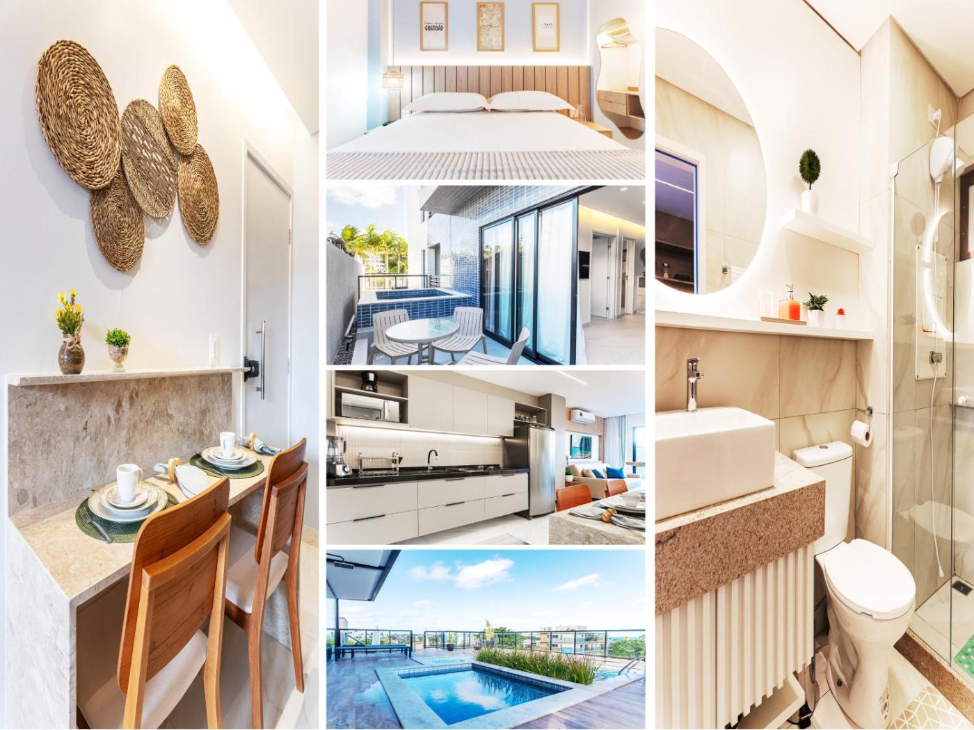 Set 300 metres from Porto De Galinhas Beach and 400 metres from Natural Lake in the centre of Porto De Galinhas, Flat com 1 quarto e piscina privativa no centro de Porto, 200m da rua das sobrinhas e das piscinas naturais offers accommodation with free WiFi and free private parking. The property was built in 2024 and features air-conditioned accommodation with a patio. The accommodation features a lift and full-day security for guests.