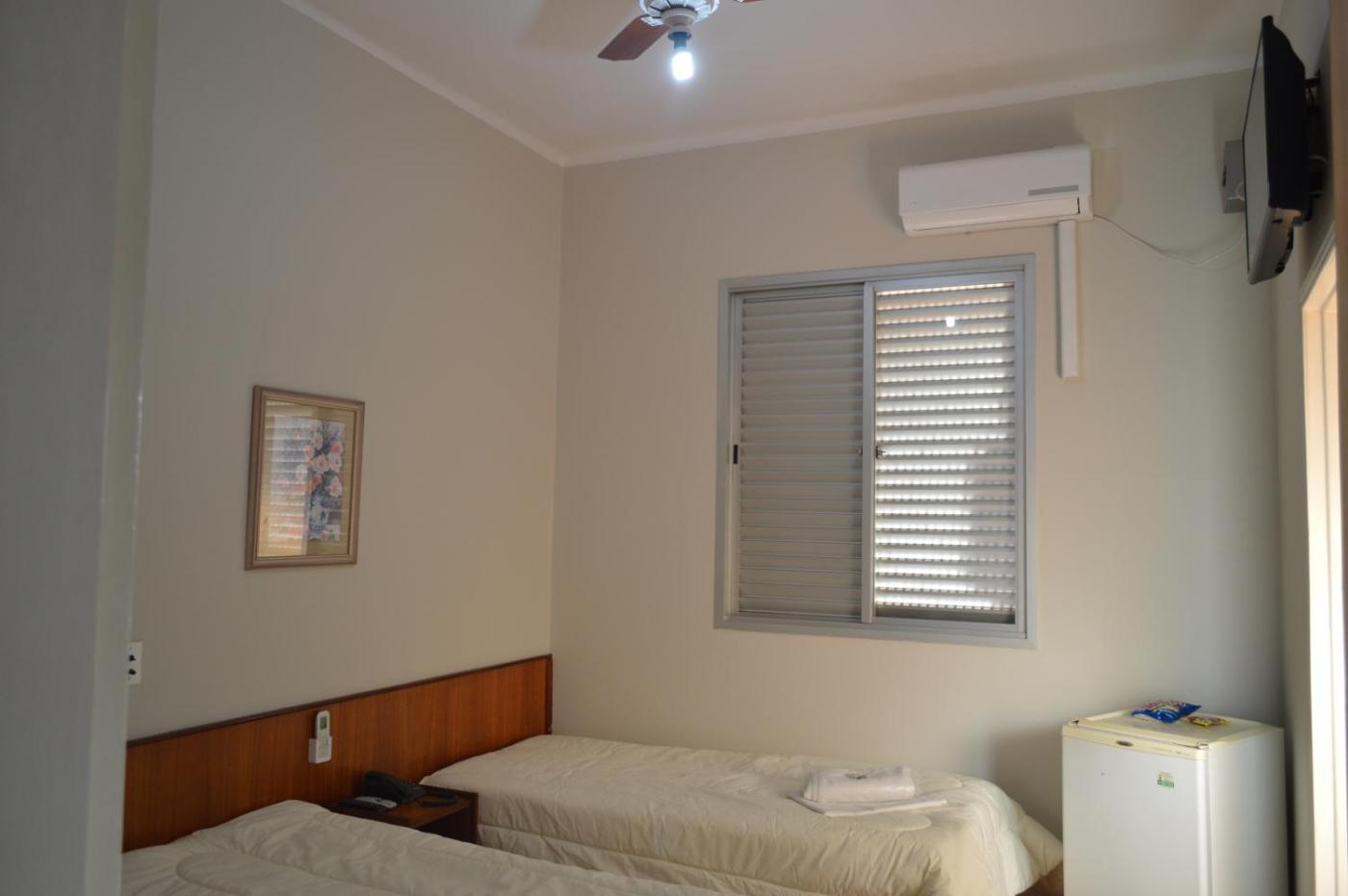 Quarto Duplo com Cama de Casal ou 2 de Solteiro com Banheiro Externo Compartilhado. Facilities for this room include a fan, TV, minibar and shared bathroom. WiFi and parking are free. Please note, a double bed at the property is two single beds placed together. Note: Bathroom its located outside the room. ;