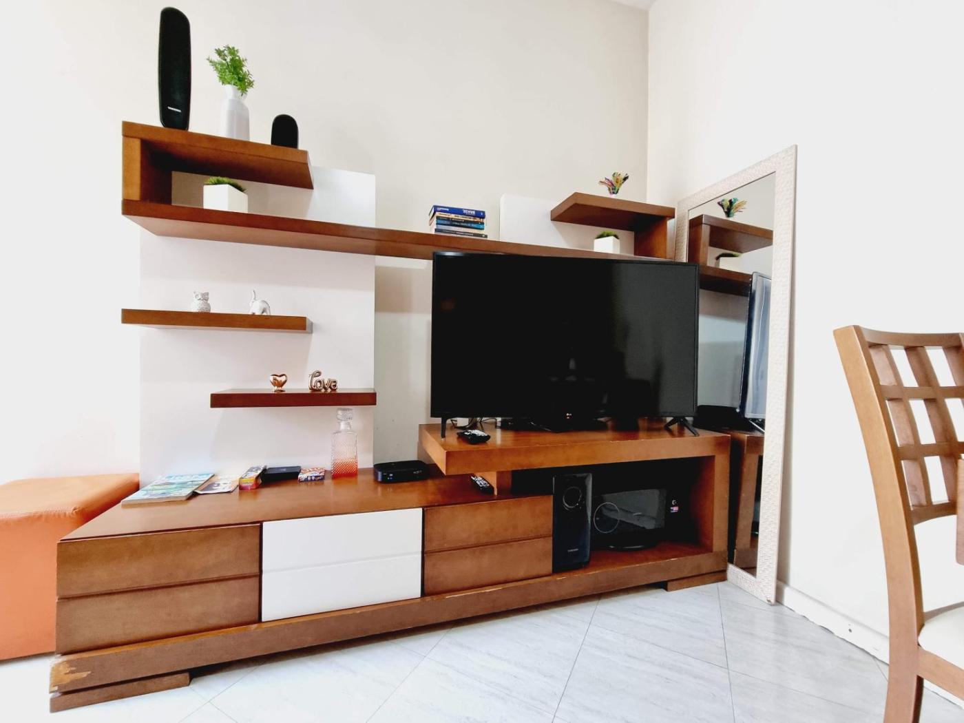 One-Bedroom Apartment. The air-conditioned apartment has 1 bedroom, 1 bathroom and a kitchen. The apartments kitchen is available for cooking and storing food. This apartment features a washing machine and a flat-screen TV. The unit has 2 beds.