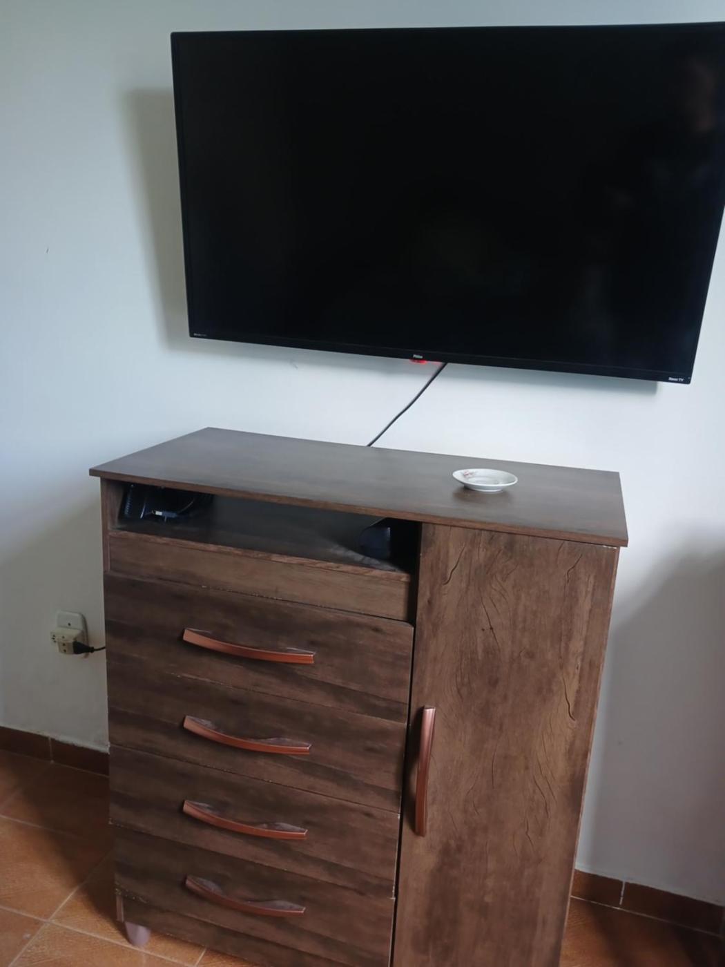 The villa is composed of 2 bedrooms, a fully equipped kitchen, and 1 bathroom. A flat-screen TV is featured.