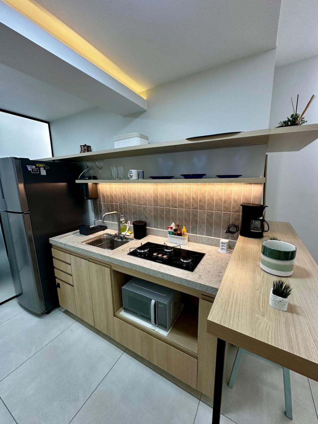 Apartment 1. The apartments kitchen is available for cooking and storing food. This apartment features air conditioning, a washing machine and a TV.