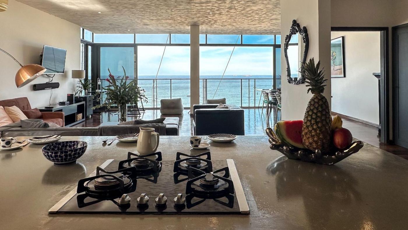 Three-Bedroom Apartment with Ocean View. Featuring 3 bedrooms and 2 bathrooms, this spacious apartment offers a well-fitted kitchen and a dining area. Meals can be prepared in the kitchen, which is equipped with a stovetop, a refrigerator, kitchenware and an oven. The air-conditioned apartment provides a flat-screen TV with cable channels, a washing machine, a coffee machine, a wardrobe as well as sea views. The unit has 3 beds.