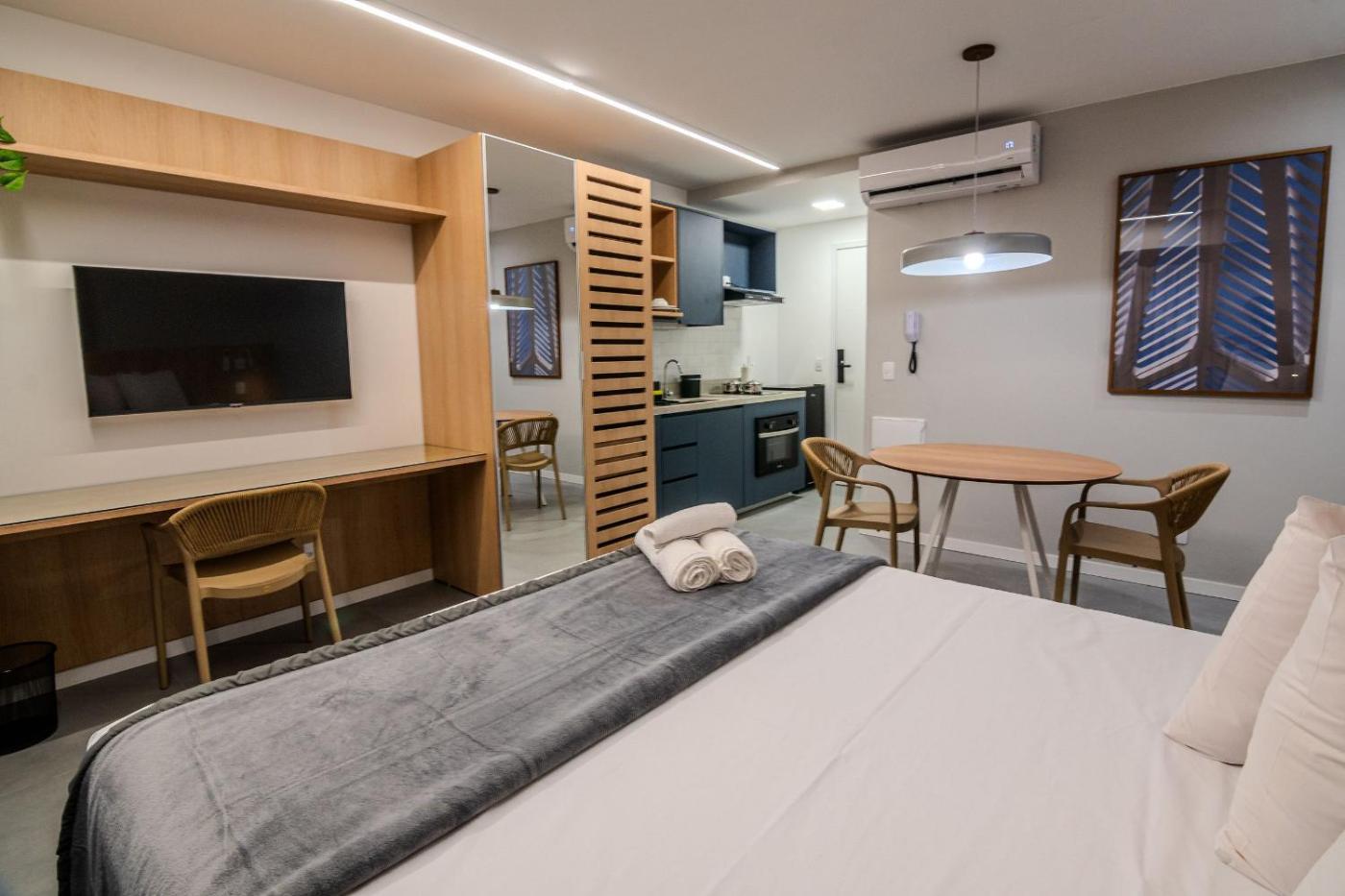 Standard Studio. The rooftop pool is a top feature of this studio. The fully equipped kitchen has a stovetop, a refrigerator, kitchenware and a microwave. The studio offers air conditioning, a seating area, a balcony with city views as well as a private bathroom boasting a shower. The unit has 1 bed. ;