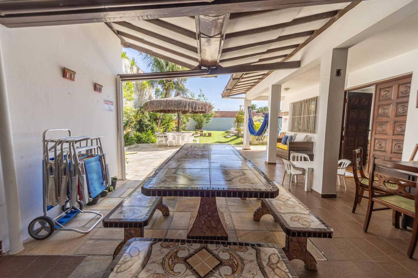 Featuring air-conditioned accommodation with a private pool, Casa com Piscina e Churrasqueira no Jardim Indaia isin Ilha Monte Pascoal. Boasting a garden, the holiday home is close to several noted attractions, around 1.5 km from Stamped Stone and around 300 metres from Sacred Heart Catholic Community. Free WiFi is available throughout the property and Indaia Beach is 300 metres away.
