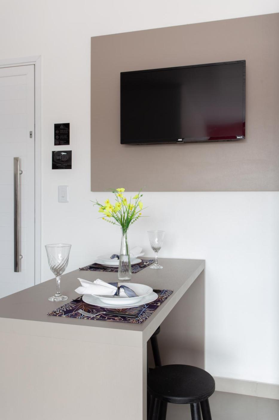 Standard Studio. The studio features air conditioning and a tea and coffee maker, as well as a private bathroom boasting a shower. In the well-fitted kitchen, guests will find a stovetop, a refrigerator, kitchenware and a microwave. The studio provides a dining area, a wardrobe, a dressing room, a tiled floor and a flat-screen TV. ;