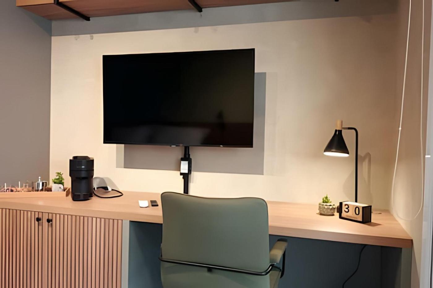 One-Bedroom Apartment. Boasting a private entrance, this air-conditioned apartment includes 1 bedroom and 1 bathroom with a hairdryer. In the well-fitted kitchen, guests will find a stovetop, a refrigerator, kitchenware and a microwave. Featuring a balcony, this apartment also offers a coffee machine, a wardrobe and a flat-screen TV. The unit has 2 beds.
