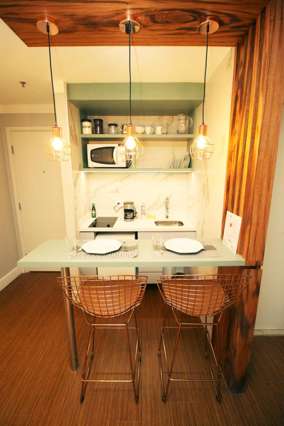 Standard Studio. Guests will have a special experience as this studio features a rooftop pool and a sauna. Providing free toiletries, this studio includes a private bathroom with a shower and a hairdryer. The studios kitchen, which features kitchenware and a microwave, is available for cooking and storing food. The air-conditioned studio provides a flat-screen TV with cable channels, a minibar, a tea and coffee maker, a seating area as well as city views. The unit offers 2 beds. ;