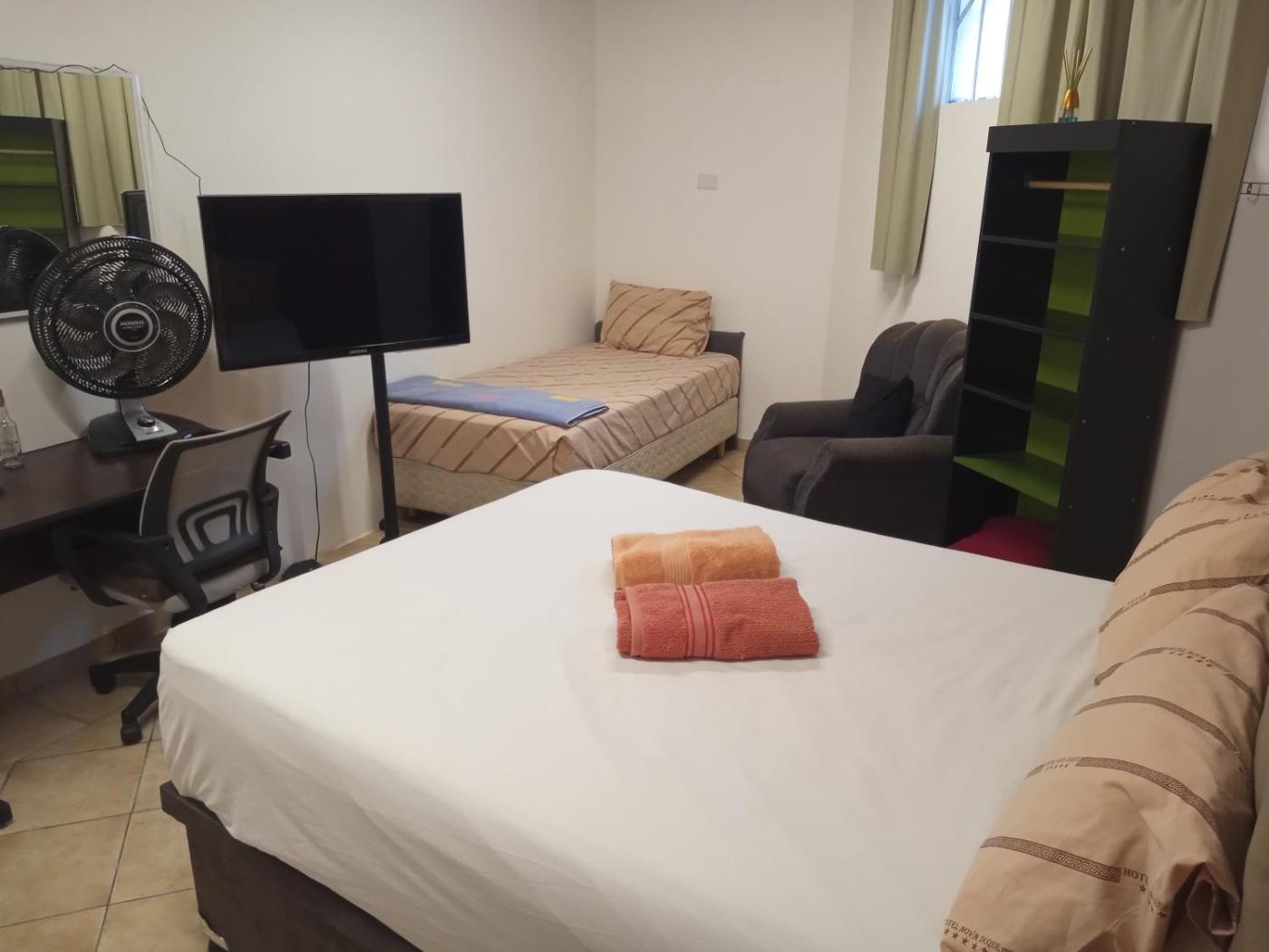 At the hostel, the rooms are fitted with a shared bathroom with a shower.