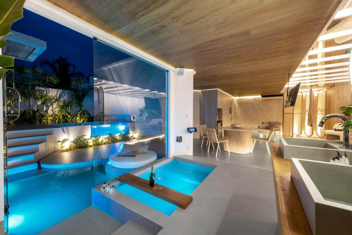 Deluxe Suite with Spa Bath. The spacious suite features air conditioning, a private entrance, as well as a private bathroom boasting a bath and a shower. This suite has a minibar, a tiled floor and a flat-screen TV with satellite channels. The unit has 1 bed. ;